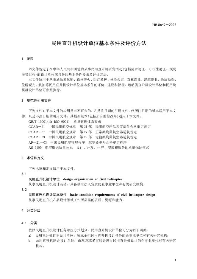 HB 8649-2022 民用直升机设计单位基本条件及评价方法