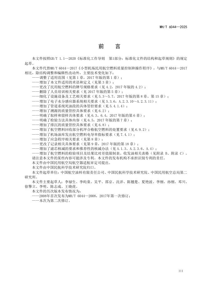 MH/T 6044-2025 小型运输机场民用航空燃料质量控制和操作程序