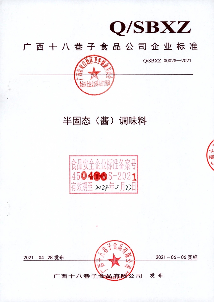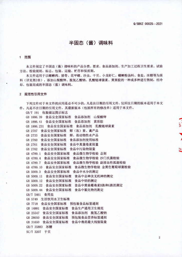 Q/SBXZ 0002S-2021 半固态(酱)调味料