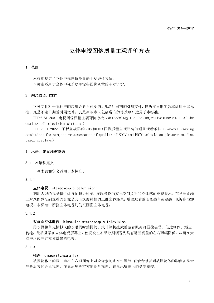 GY/T 314-2017 立体电视图像质量主观评价方法