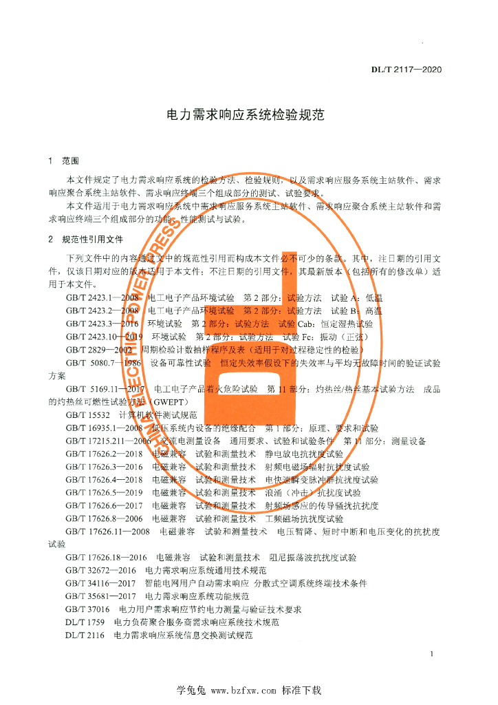 DL/T 2117-2020 电力需求响应系统检验规范