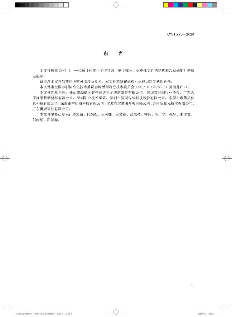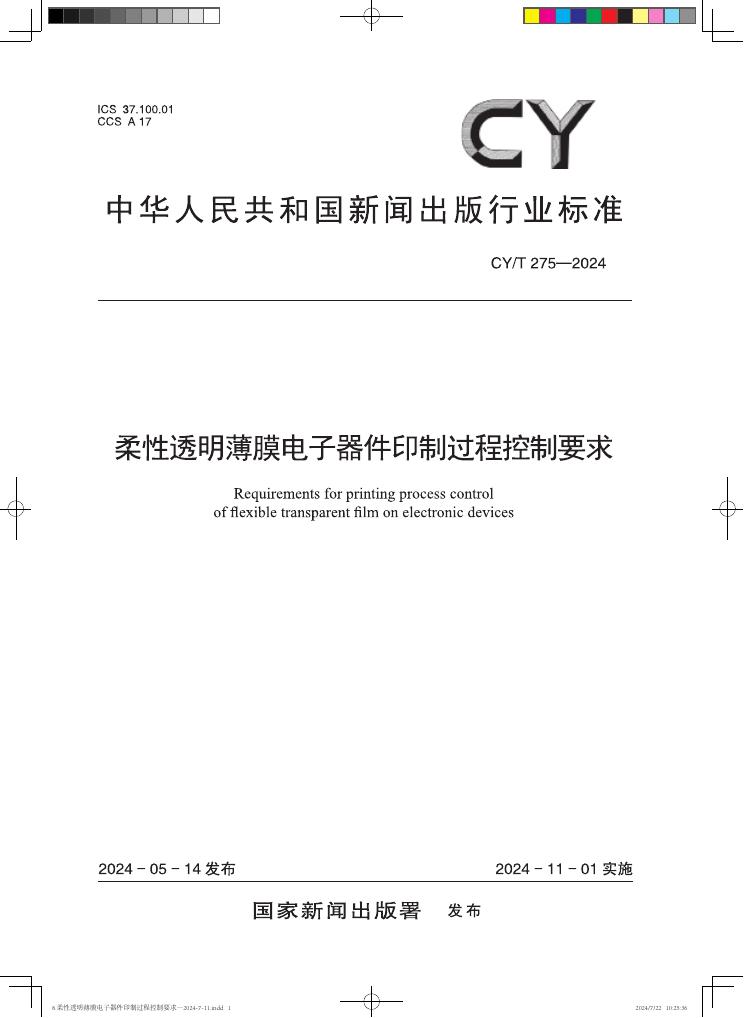 CY/T 275-2024 柔性透明薄膜电子器件印制过程控制要求