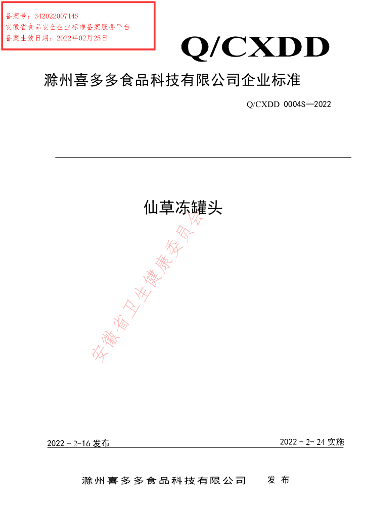 Q/CXDD 0004S-2022 仙草冻罐头