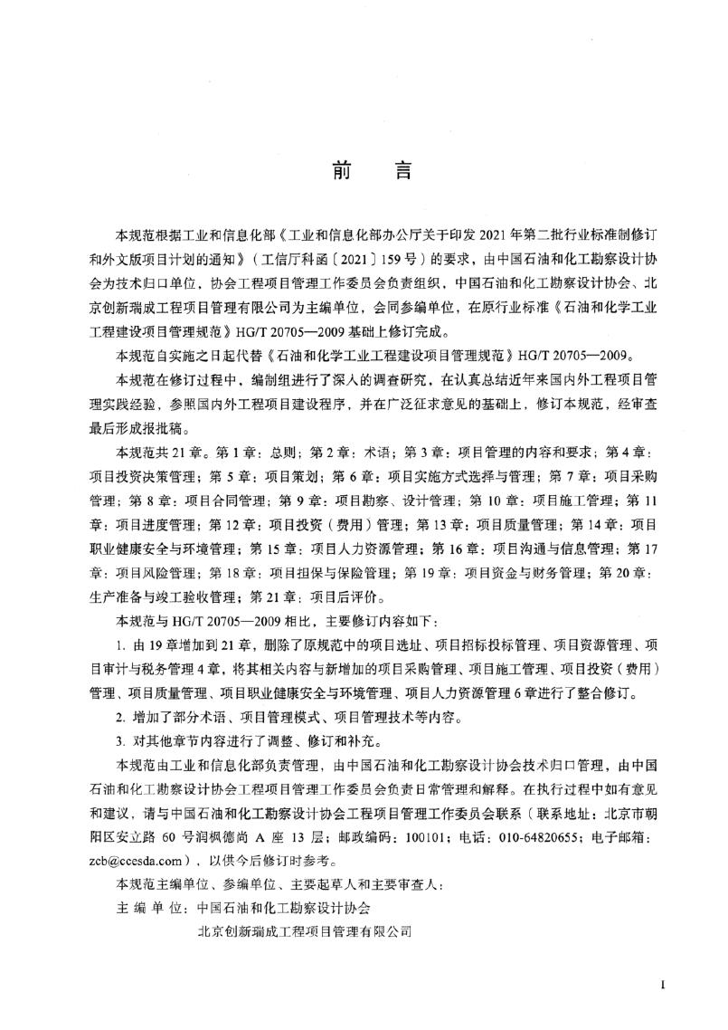 HG/T 20705-2025 石油和化学工业工程建设项目管理规范