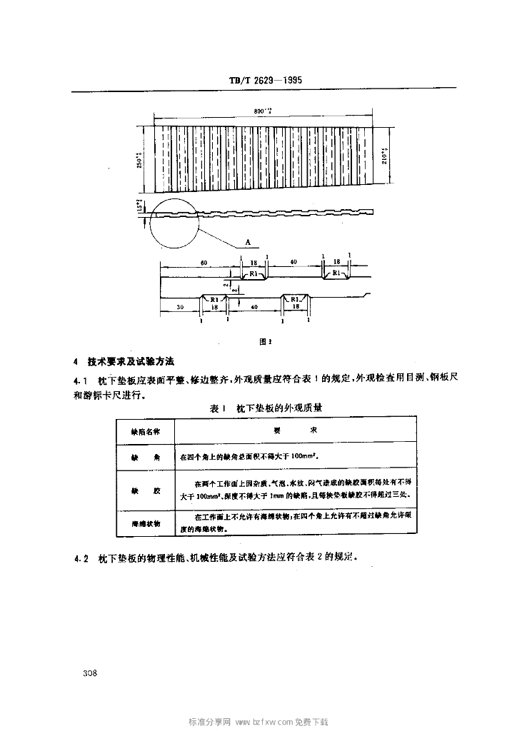 TB/T 2629-1995 铁路混凝土轨枕枕下弹性垫板