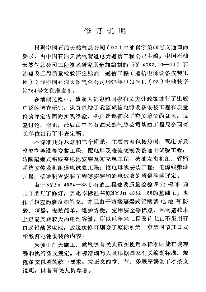SY 4032.10-1993 石油建设工程质量检验评定通信工程通信电源设备安装工程