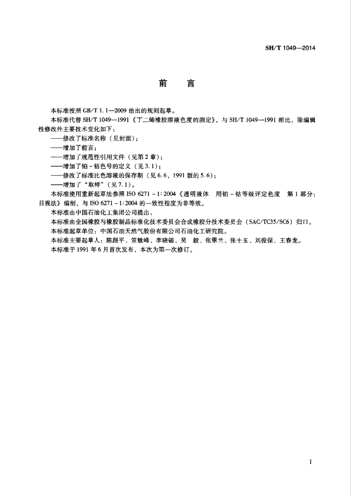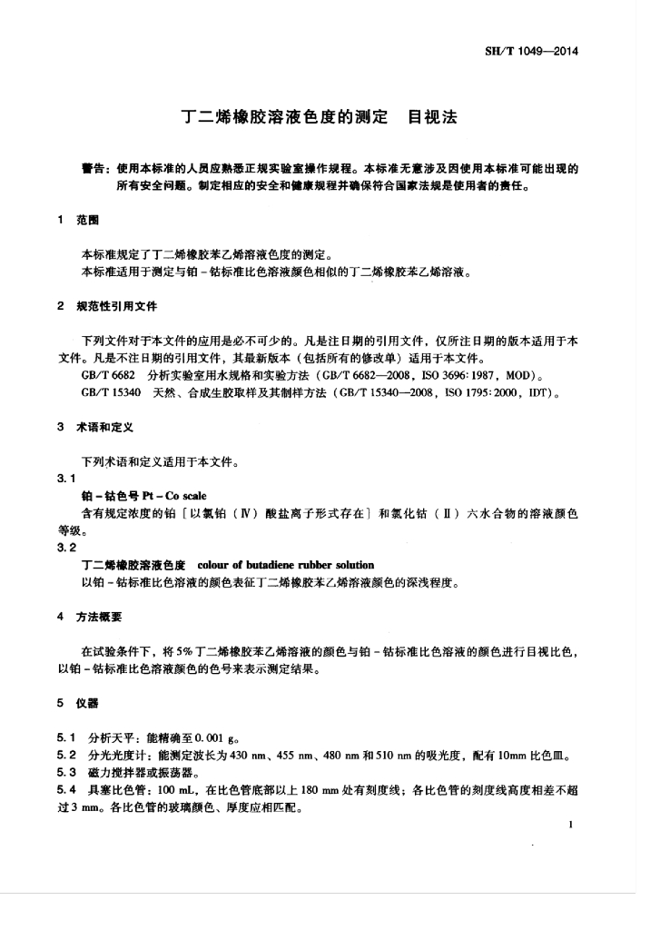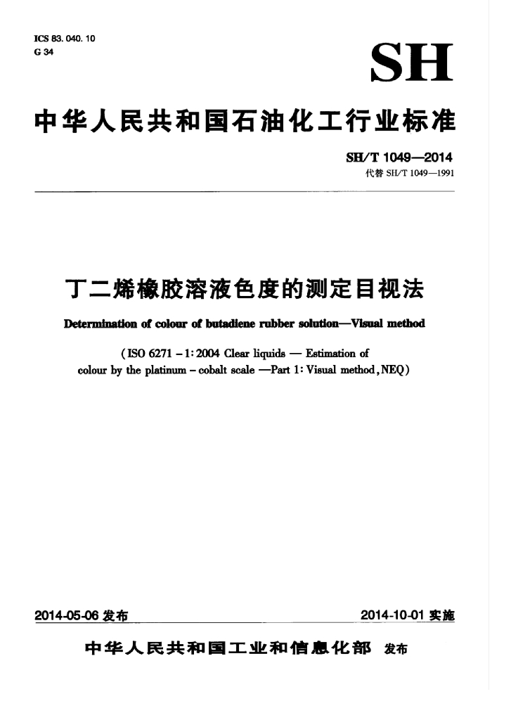 SH/T 1049-2014 丁二烯橡胶溶液色度的测定目视法