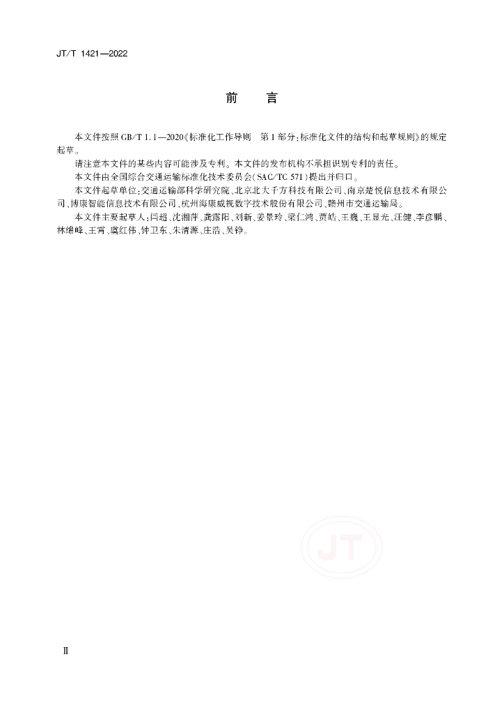 交通运输部科学研究院、北京北大千方科技有限公司、南京楚悦信息技术有限公司、博康智能信息技术有限公司、杭州海康威视数字技术股份有限公司、赣州市交通运输局