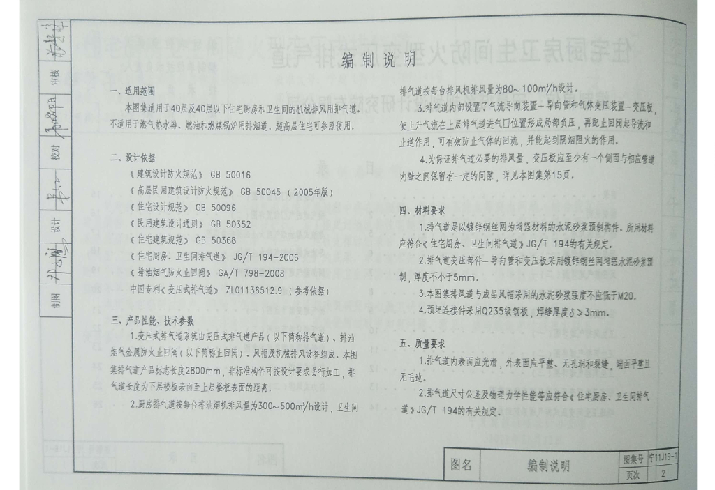 宁11J19-1 住宅厨房卫生间防火型变压式排气道图集