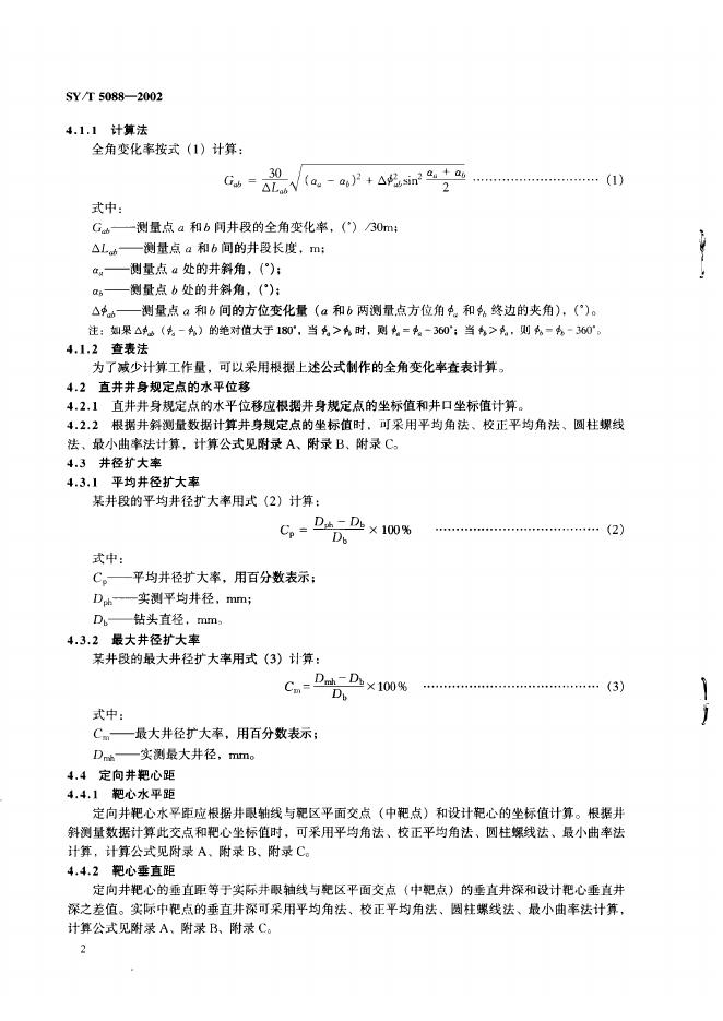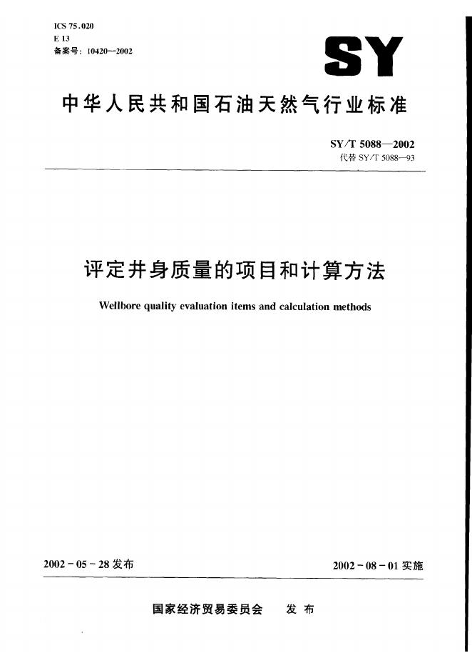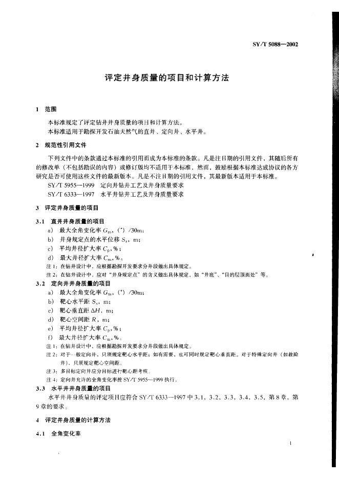 SY/T 5088-1993 评定井深质量的项目和计算方法
