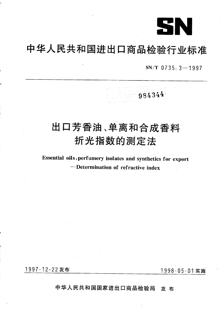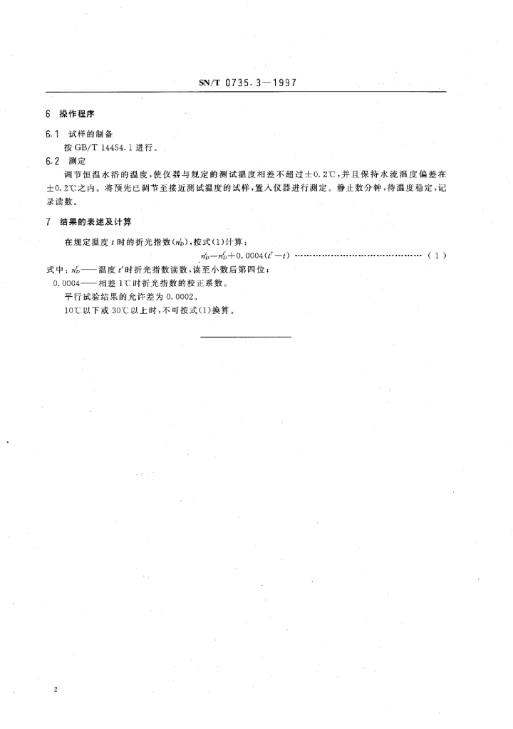 SN/T 0735.3-1997 出口芳香油、单离和合成香料折光指数的测定法