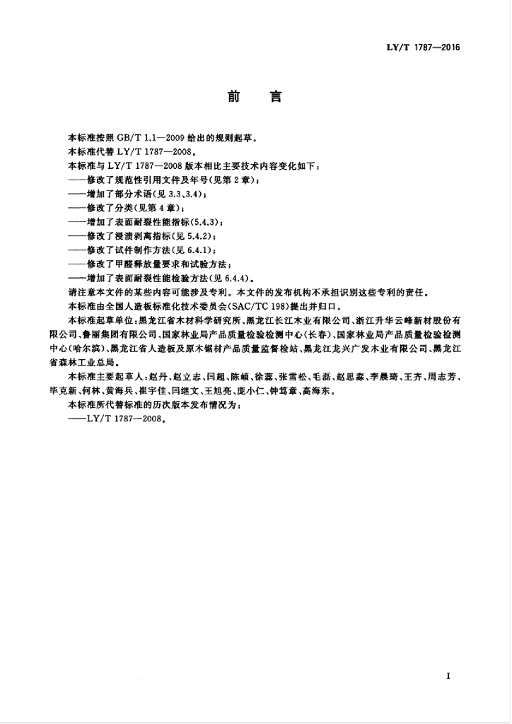 黑龙江省木材科学研究所、黑龙江长江木业有限公司、浙江升华云峰新材股份有限公司、鲁丽集团有限公司、国家林业局产品质量检验检测中心(长春)等