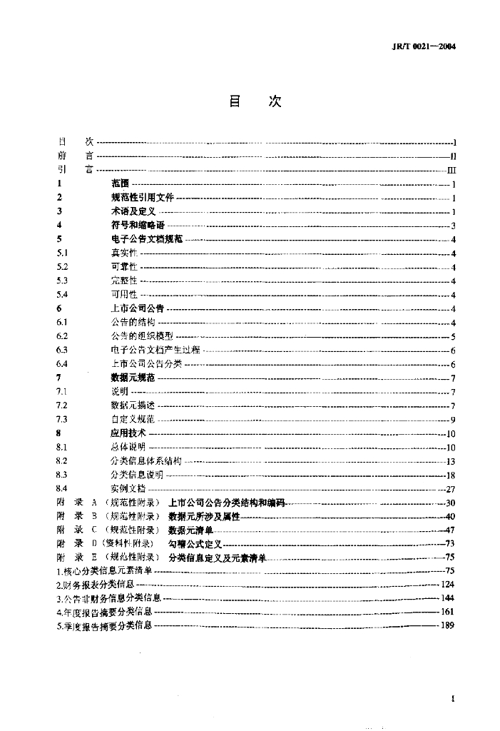 JR/T 0021-2004 上市公司信息披露电子化规范