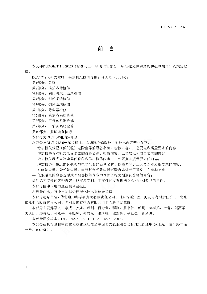 DL/T 748.6-2021 火力发电厂锅炉机组检修导则 第6部分:除尘器检修
