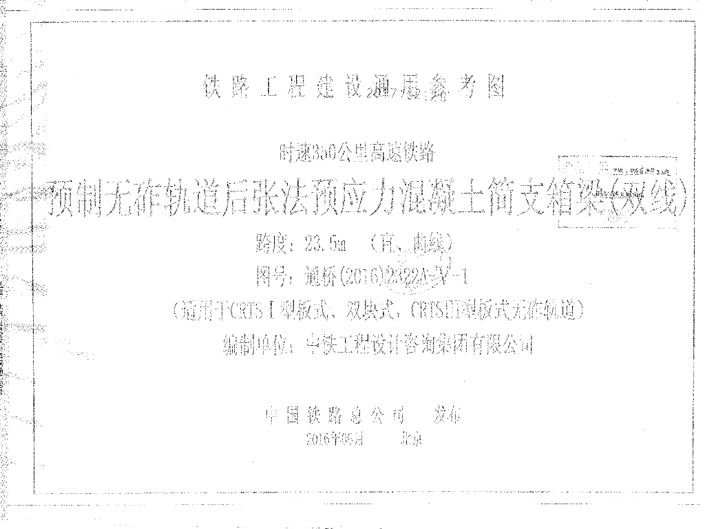 通桥(2016)2322A-V-1 高速铁路预制无砟轨道后张法预应力混凝土简支箱梁(双线) 跨度23.5m(直、曲线)图集