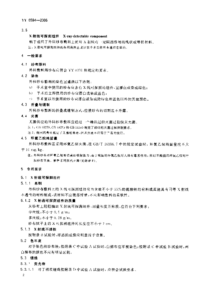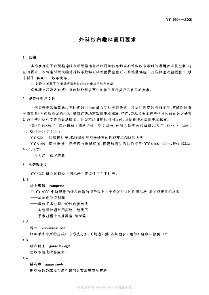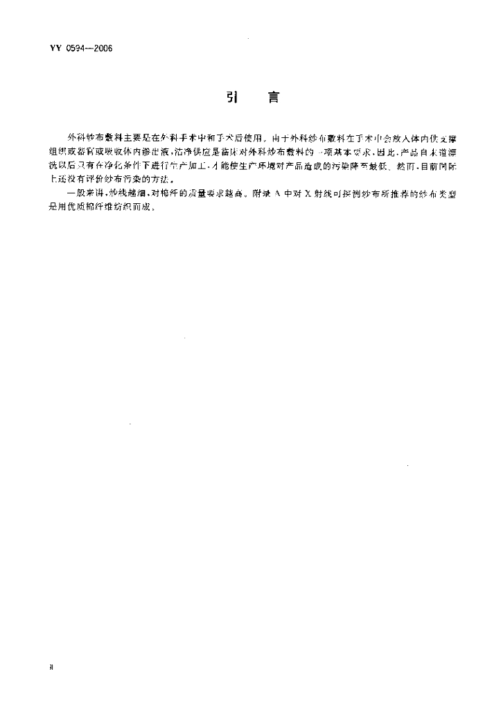 YY 0594-2006 外科纱布敷料通用要求