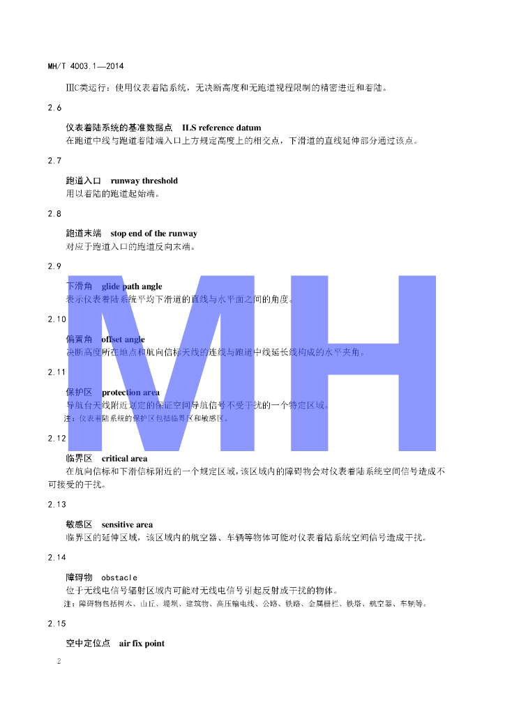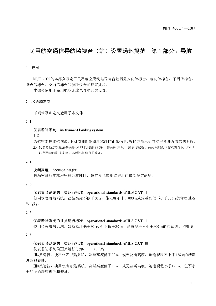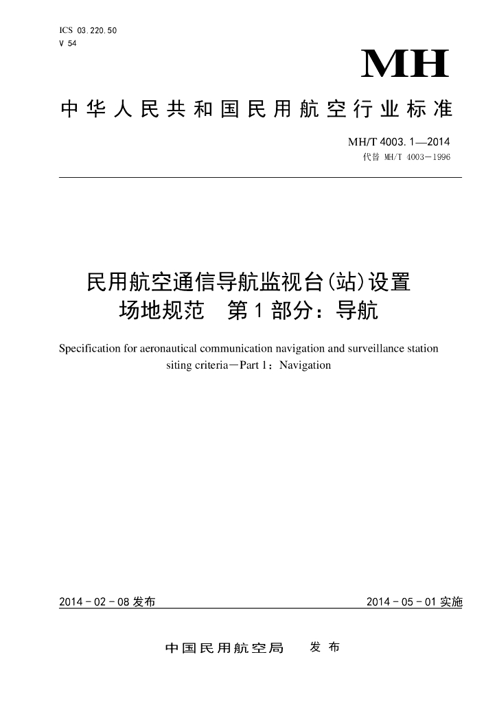 MH/T 4003.1-2014 民用航空通信导航监视台(站)设置场地规范 第1部分:导航