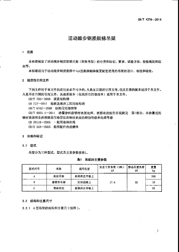 CB/T 4378-2014 活动踏步钢质舷梯吊架