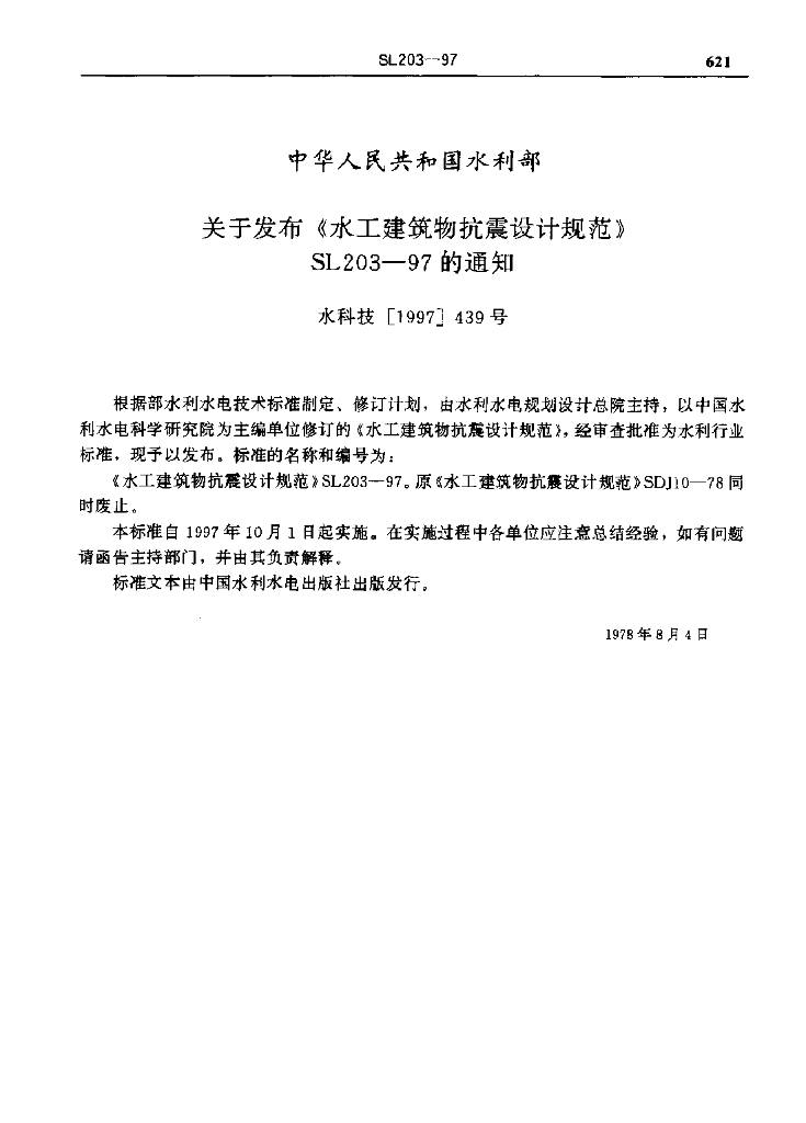 SL 203-1997 水工建筑物抗震设计规范(附条文说明)