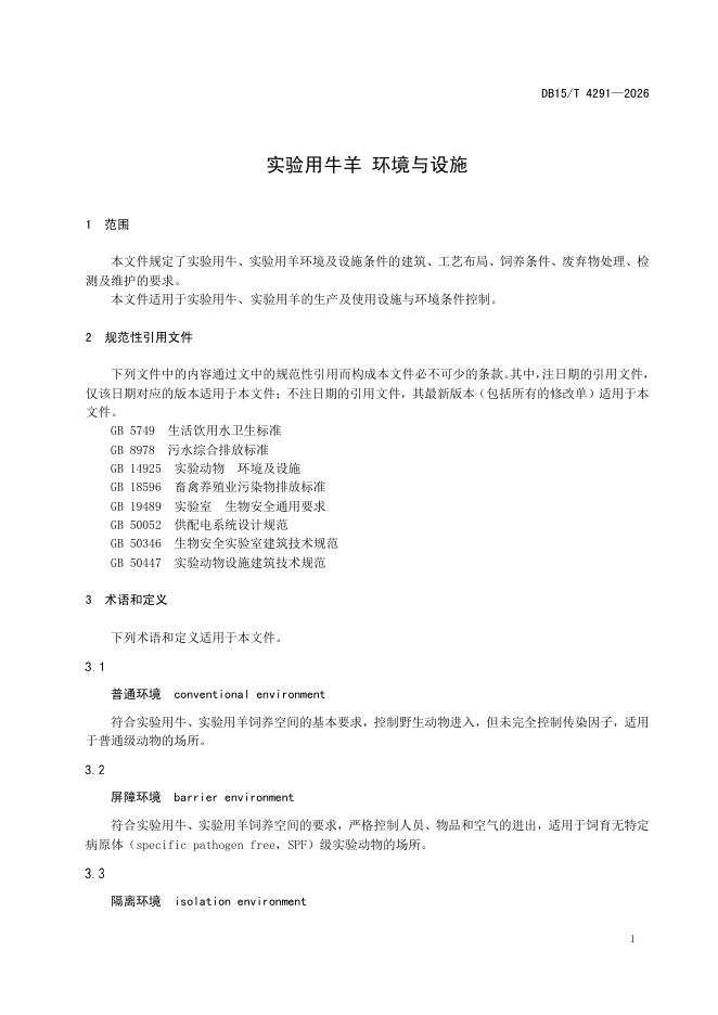 DB15/T 4291-2026 实验用牛羊 环境与设施