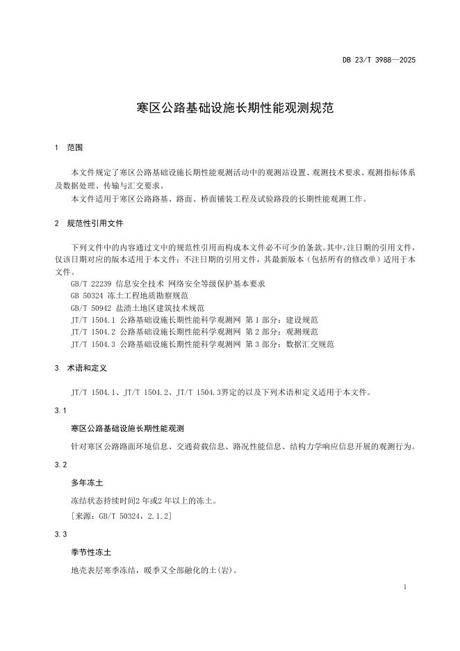 DB23/T 3988-2024 寒区公路基础设施长期性能观测规范