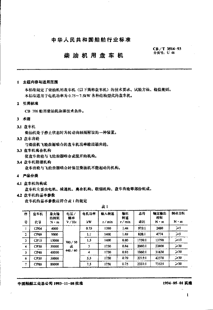 CB/T 3516-1993 柴油机用盘车机