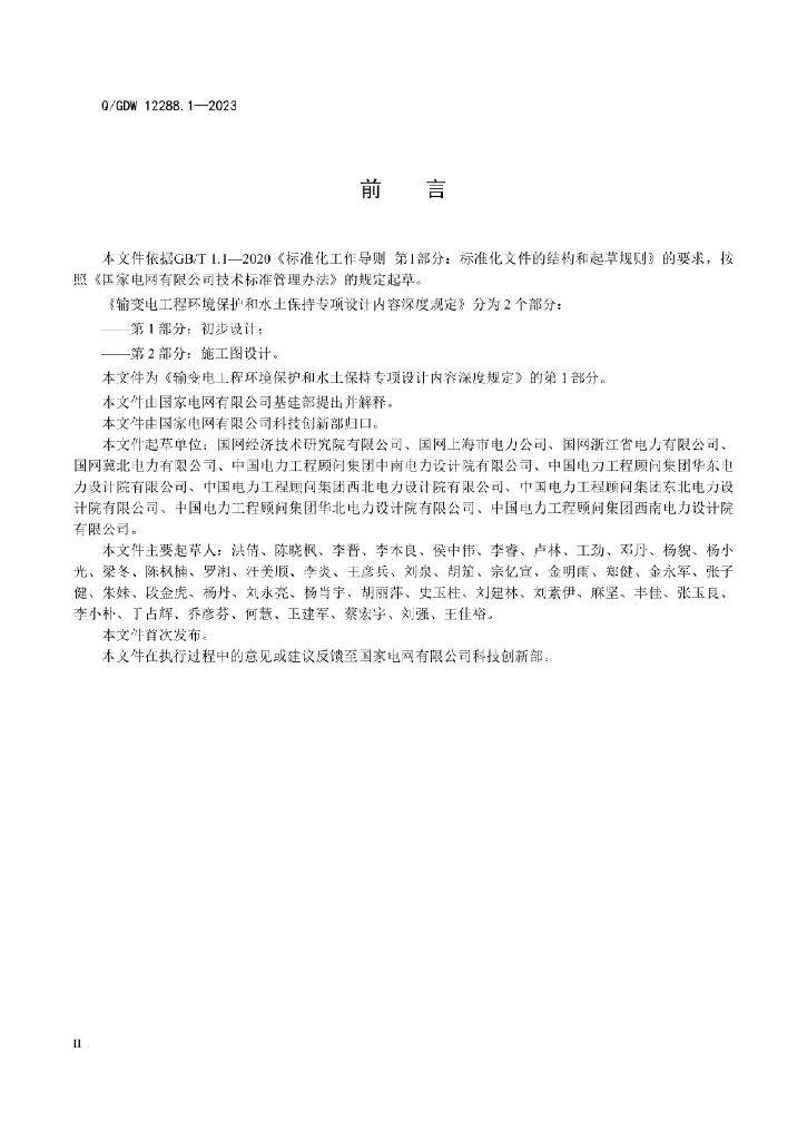 Q/GDW 12288.1-2023 输变电工程环境保护和水土保持专项设计内容深度规定 第1部分:初步设计阶段