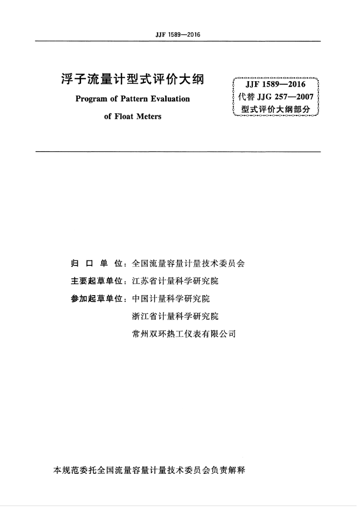 - 代替标准:JJG 257-2007