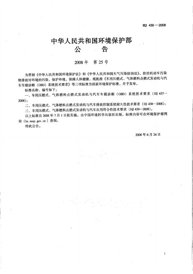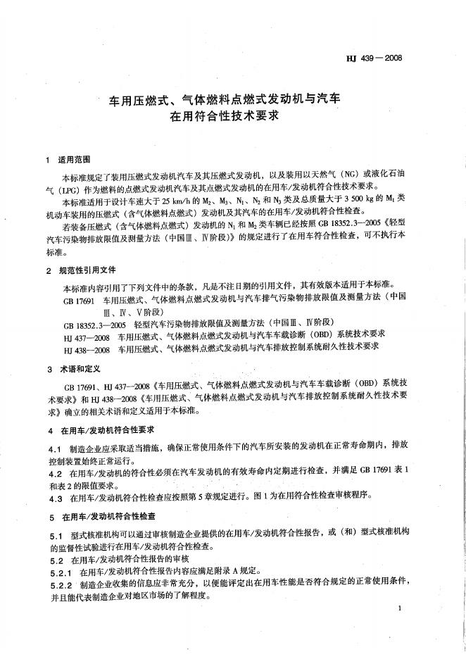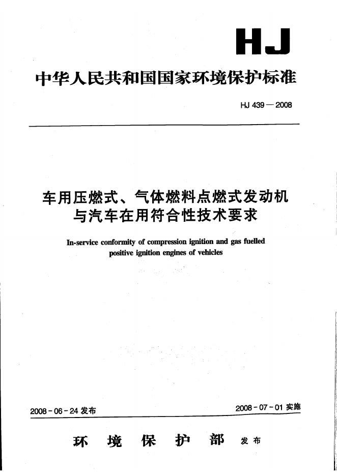 HJ 439-2008 车用压燃式、气体燃料点燃式发动机与汽车在用符合性技术要求