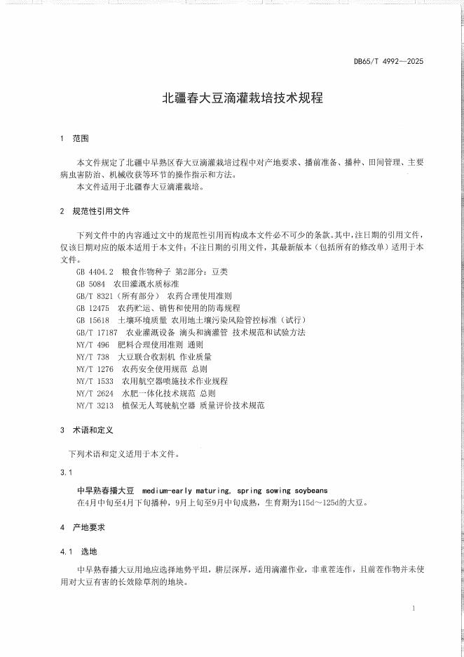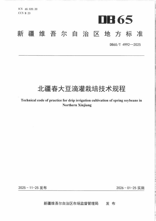 DB65/T 4992-2025 北疆春大豆滴灌栽培技术规程