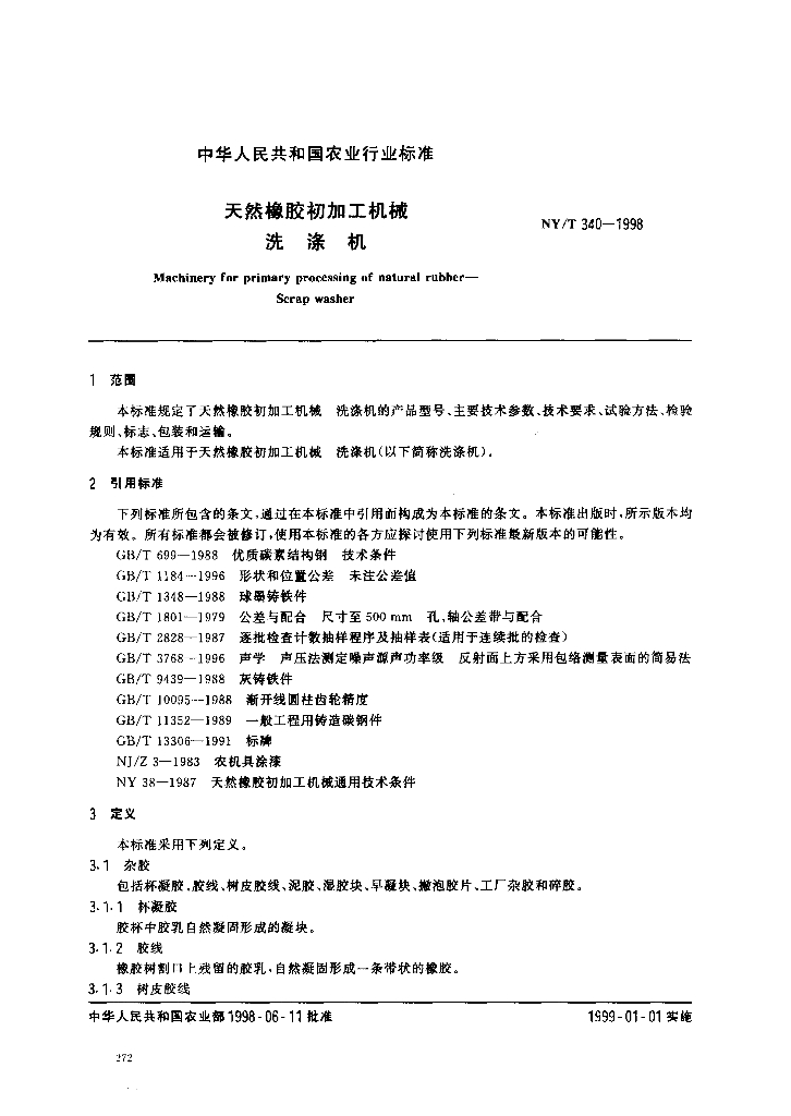 NY/T 340-1998 天然橡胶初加工机械 洗涤机
