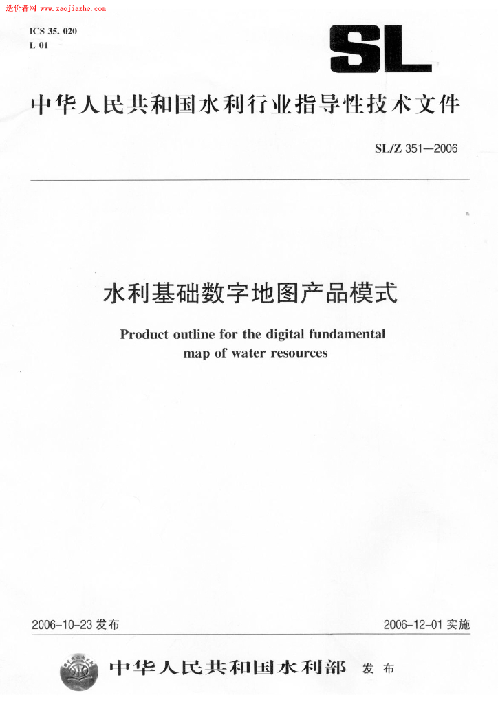 SL/Z 351-2006 水利基础数字地图产品模式