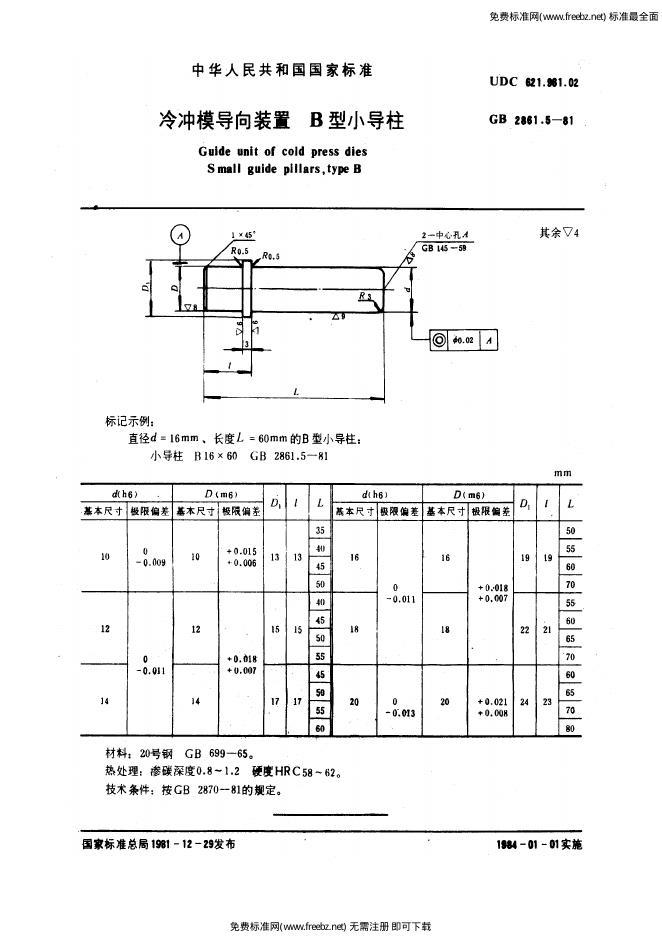 GB/T 2861.5-1981 冷冲模导向装置 B型小导柱