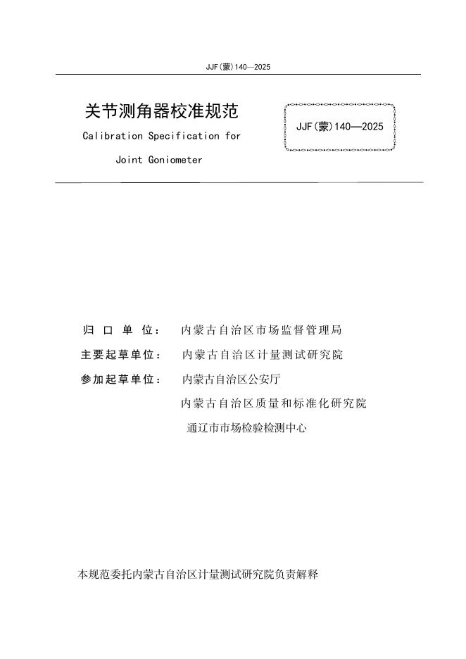 JJF(蒙)140-2025 关节测角器校准规范