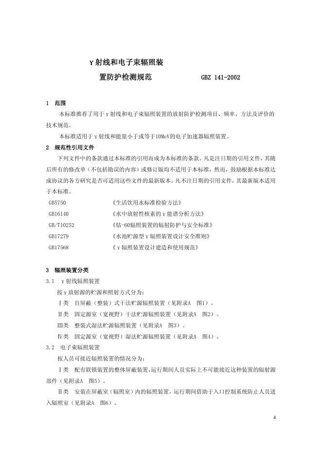 GBZ/T 141-2002 γ射线和电子束辐照装置防护检测规范