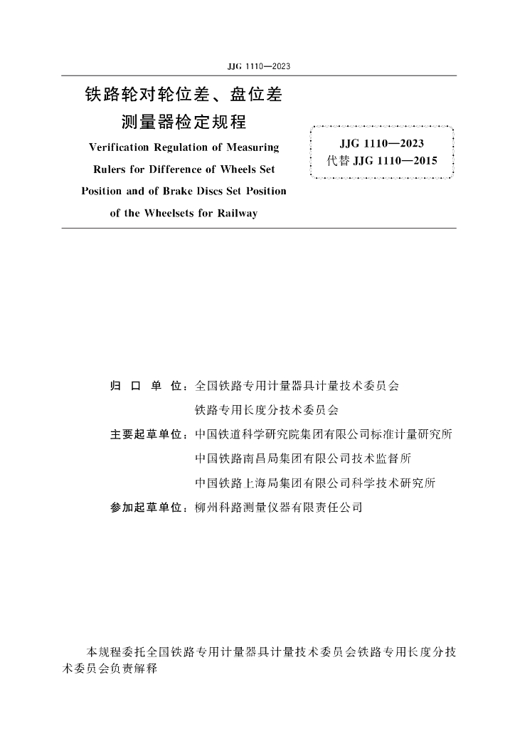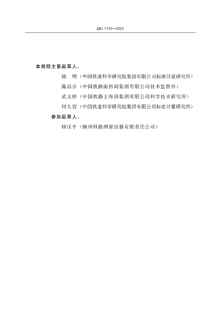 中国铁道科学研究院集团有限公司标准计量研究所、中国铁路南昌局集团有限公司技术监督所、中国铁路上海局集团有限公司科学技术研究所、柳州科路测量仪器有限责任公司