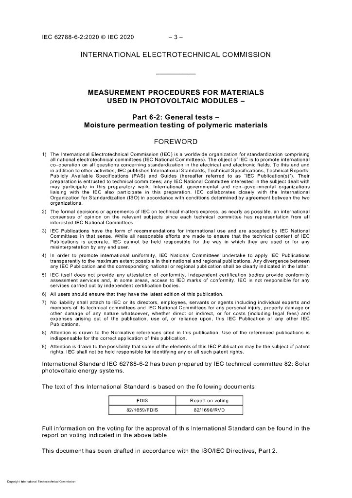 IEC 62788-6-2-2020 光伏组件用材料的测量程序 第6-2部分 一般试验 高分子材料透湿性试验