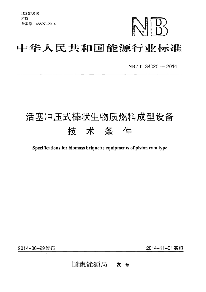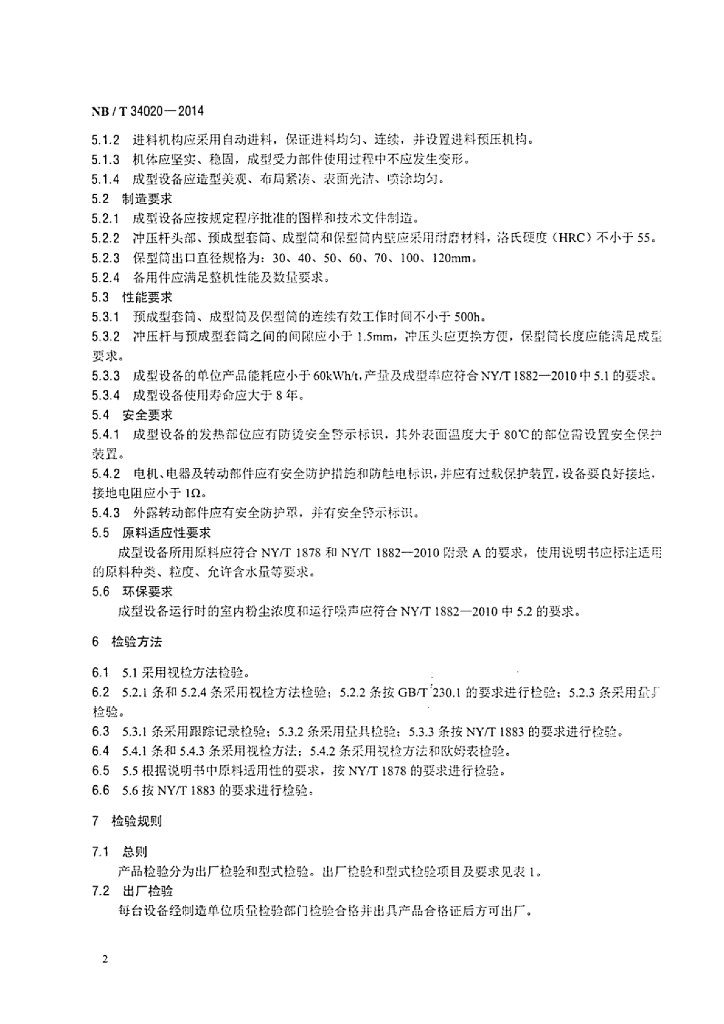 NB/T 34020-2014 活塞冲压式棒状生物质燃料成型设备技术条件
