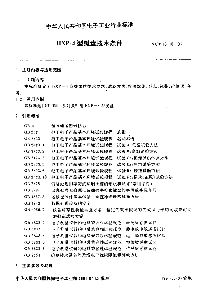SJ/T 10118-1991 HXP-4型键盘技术条件