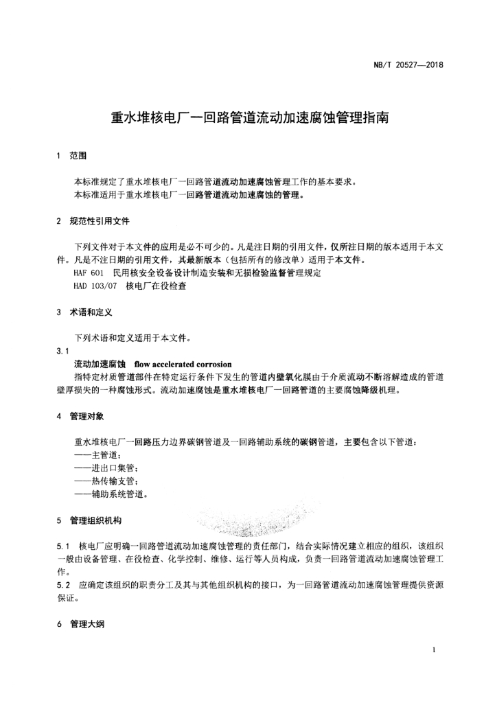 NB/T 20527-2018 重水堆核电厂一回路管道流动加速腐蚀管理指南