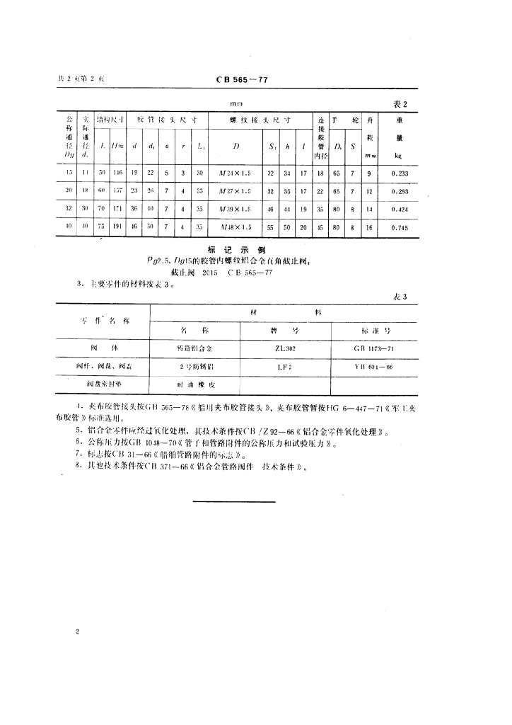 CB 565-1977 胶管内螺纹铝合金直角截止阀