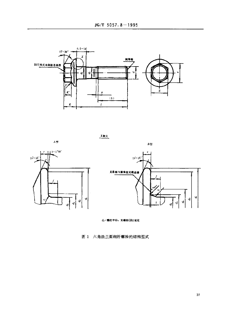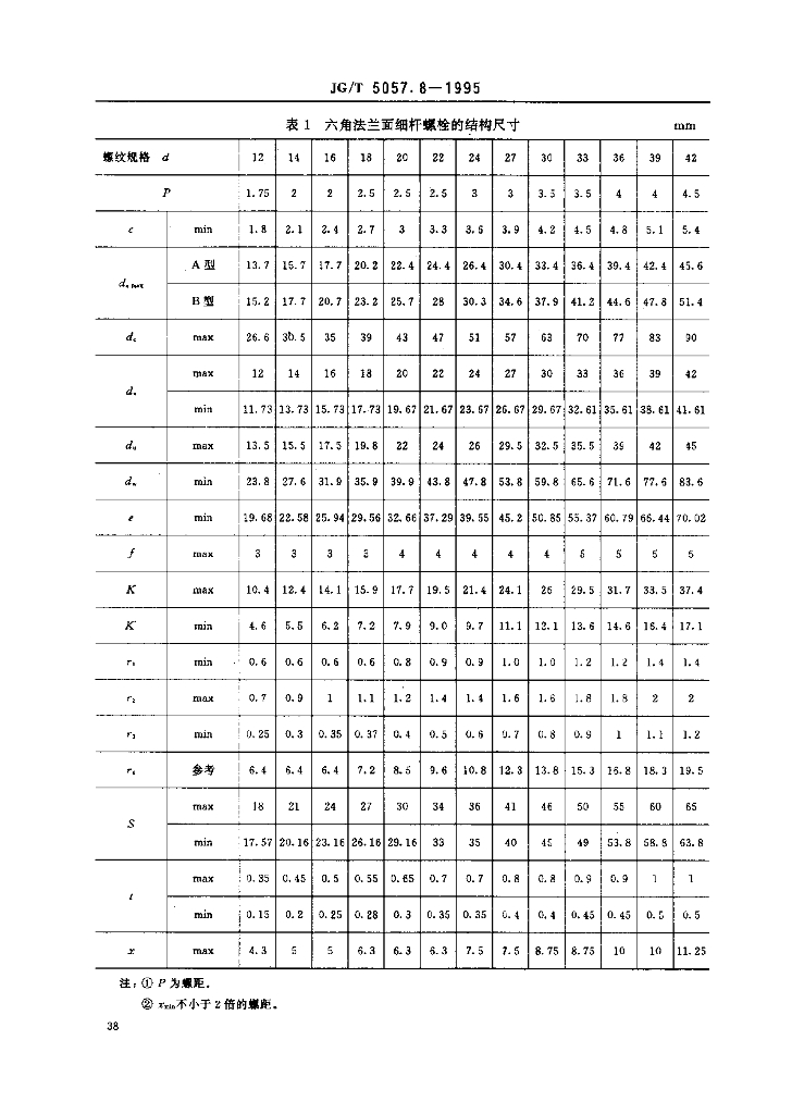 JG/T 5057.8-1995 建筑机械与设备 高强度六角法兰面螺栓 细杆