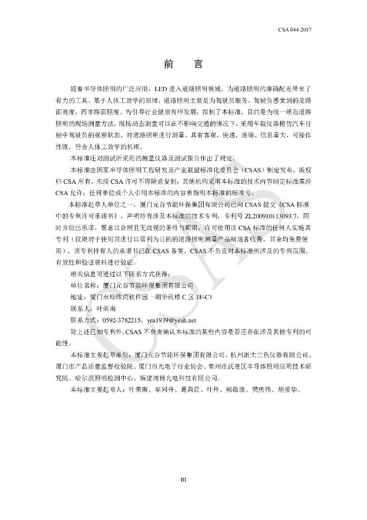 厦门元谷节能环保集团有限公司、杭州浙大三色仪器有限公司、厦门市产品质量监督检验院、厦门市光电子行业协会、常州市武进区半导体照明应用技术研究院、哈尔滨照明检测中心、福建鸿博光电科技有限公司