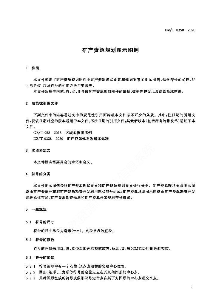 DZ/T 0350-2020 矿产资源规划图示图例