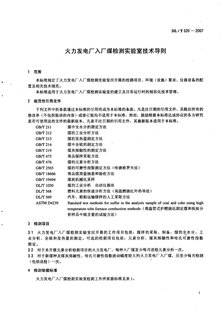 DL/T 520-2007 火力发电厂入厂煤检测实验室技术导则