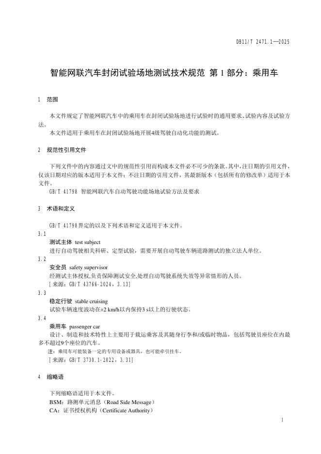 DB11/T 2471.1-2025 智能网联汽车封闭试验场地测试技术规范 第1部分:乘用车
