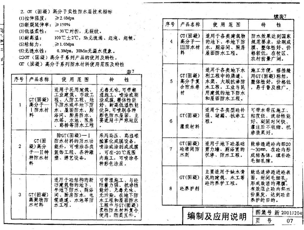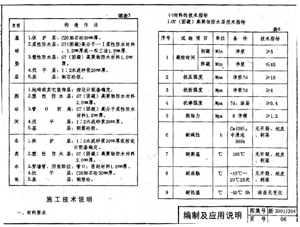 新2001J204 GT(固凝)防水材料构造图集