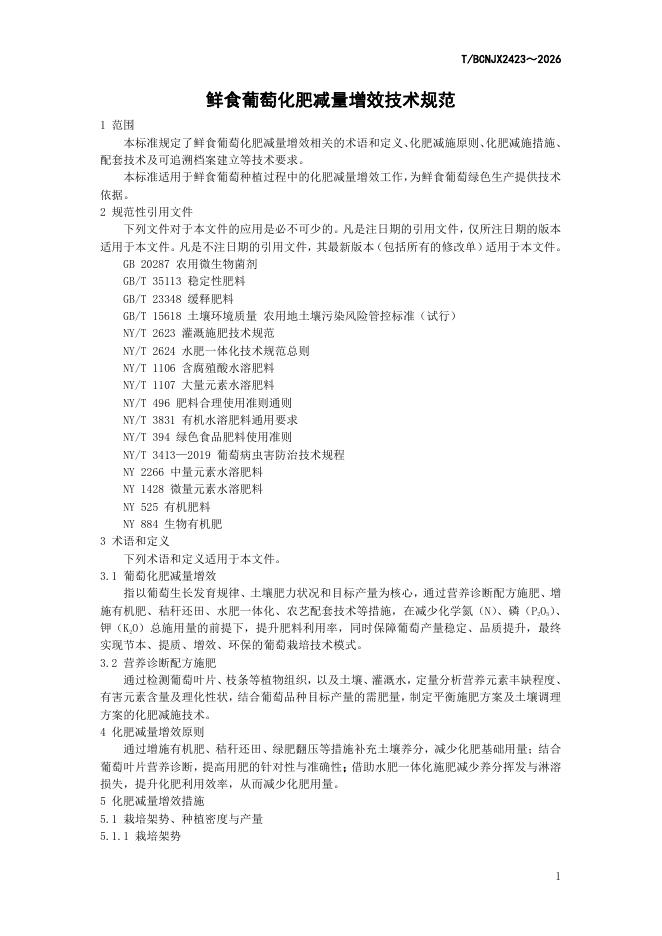 T/BCNJX 2423-2026 鲜食葡萄化肥减量增效技术规范