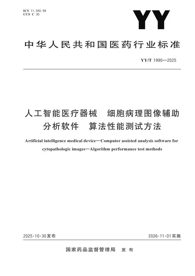 YY/T 1990-2025 人工智能医疗器械 细胞病理图像辅助分析软件 算法性能测试方法