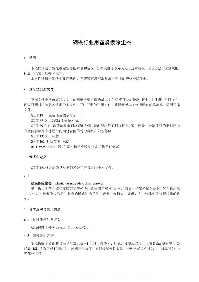 YB/T 6332-2024 钢铁行业用塑烧板除尘器